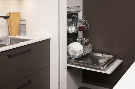Und als Einbaugerät lässt sich die Front genauso gestalten wie der Rest Ihrer Küche, sogar ganz ohne Beschläge, falls Sie es gerne grifflos haben.